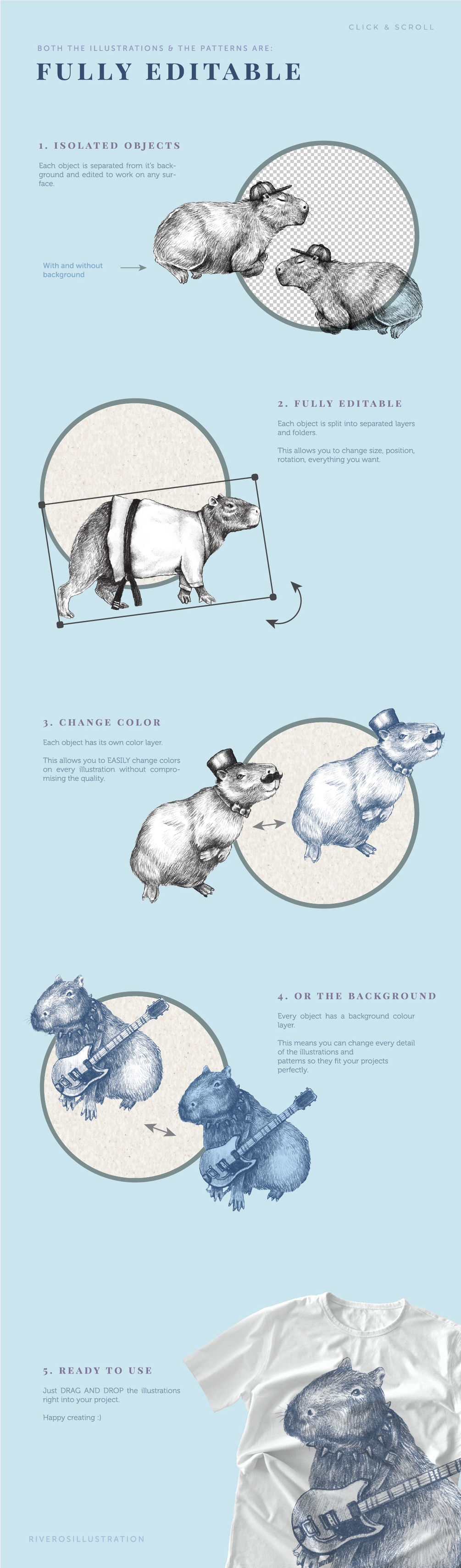 7 Fully Editable Original Capybara Illustrations