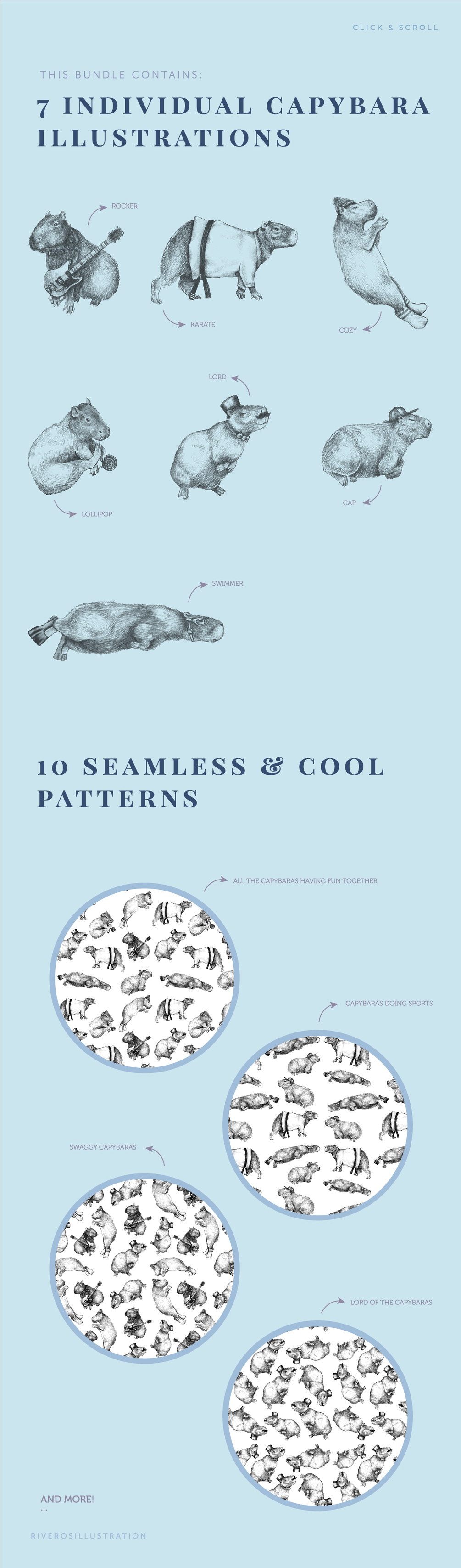 - There are 3 capybara combo patterns and 7 patterns made with each individual illustration.